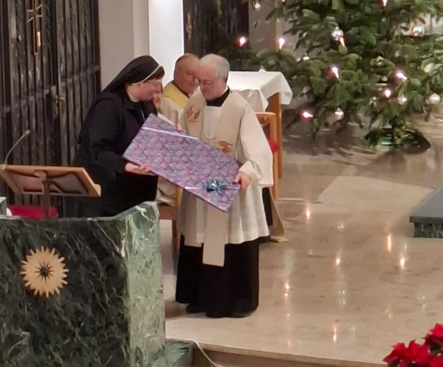 Um 11:30 Uhr besuchte der Erzbischof unsere pflegebedürftigen Schwestern auf St. Anna. Mit großer Wertschätzung sprach er mit jeder einzelnen von ihnen und spendete Trost, Zuspruch und Freude. Dieses persönliche Zeichen der Nähe wurde von unseren Schwestern mit Dankbarkeit und strahlenden Augen aufgenommen.